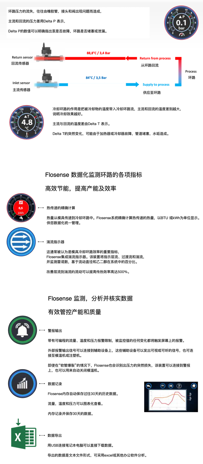 精确及时监测并记录流量,温度和压力的变化